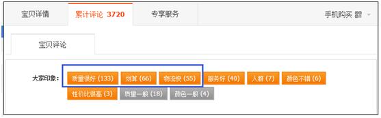 你要知道,消费者每搜索一个关键词的时候,购买行为背后,都会有一些关注的焦点影响其转化,这个数据,我们可以通过累计评价详情找出来。方法很简单,搜索核心关键词,然后找销量最好的跟你卖的宝贝一样的竞品,点击查看他的累计评价详情,我们在这里还是以“汉堡纸”为例: